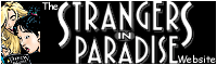 This page features reviews of an outstanding comic book series called STRANGERS IN PARADISE by a very talented artist and storyteller named Terry Moore. The series made its debut back in 1993 and most of the individual comics published to date have been compiled and made available through the volumes listed below. If you're a fan of Xena fan fiction in particular, I suspect you'll love SIP because the series is like an alternative uber-Xena novel in comic book form - and yes I did say alternative - comics have changed A LOT in recent times. SIP doesn't have the testosterone heroes with unbelievable muscles or the heroines with unbelievable breasts ;-) It doesn't rely on one- dimensional stories with predictable endings. It is a comic about human relationships and it is a comic intended for adults. Terry has built his characters and his stories around many of the same themes and strengths that originally attracted so many fans to XWP. Moreover, he bases SIP on the magic of a very special relationship, exploring all the facets of that relationship in a way that is extremely reminiscent of Xena alt. fiction.